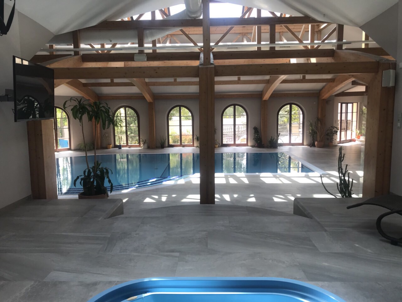 Bazén je plně k dispozici hostům v rámci pronájmu vily a je vhodný jak k odpočinku, tak k regeneraci po náročném dni. Součástí wellness je také sauna a další vybavení, které doplňuje celkový komfort místa. Ideální doplněk pro svatební víkendy, firemní retreaty i poklidné oslavy – v prostředí, které odpovídá vysokému standardu celé vily.