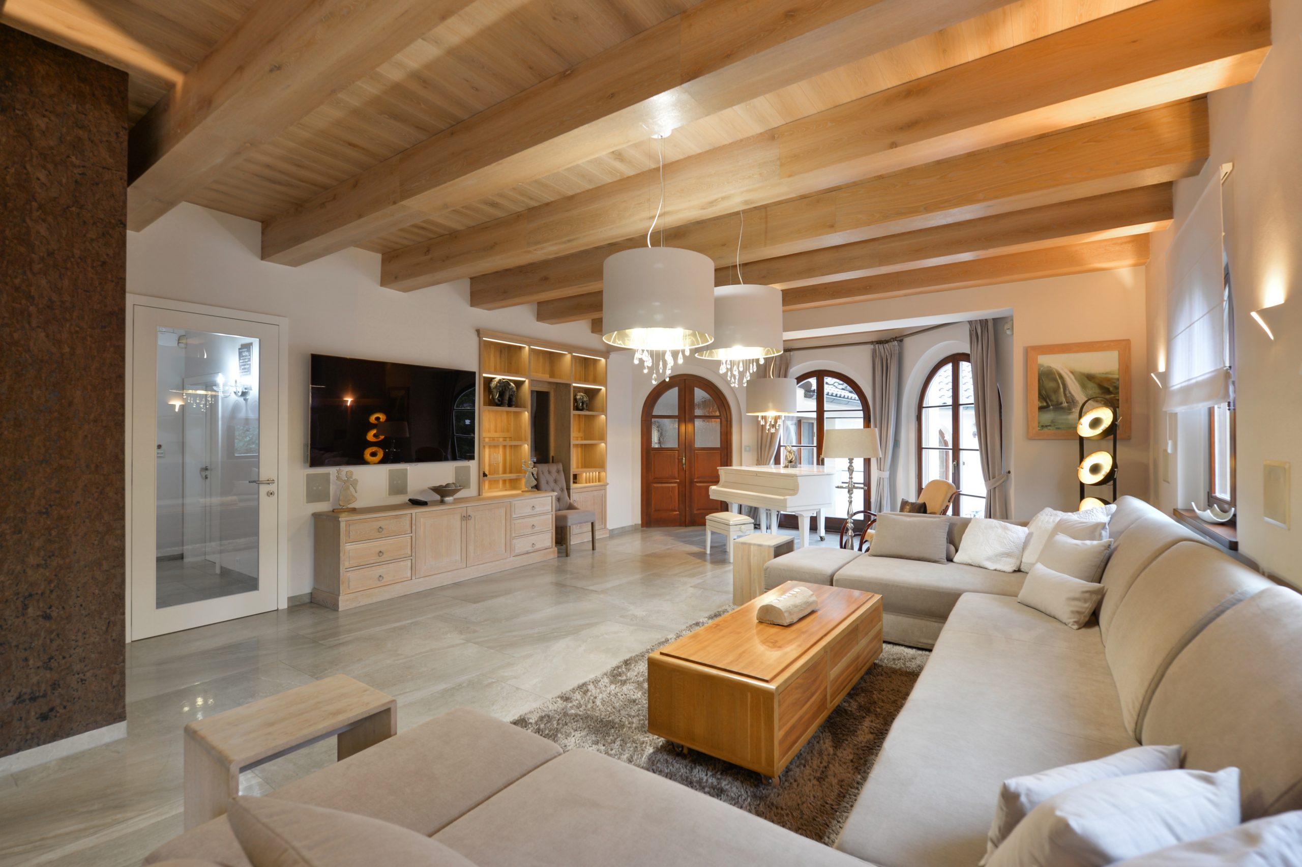 Design kuchyně kombinuje estetiku s funkčností – kvalitní spotřebiče, dostatek pracovní plochy a promyšlené uspořádání umožňují bezproblémový provoz i při větších událostech. Díky přímé návaznosti na hlavní společenské prostory je kuchyně diskrétní, ale dokonale dostupná všem, kdo se starají o váš komfort.